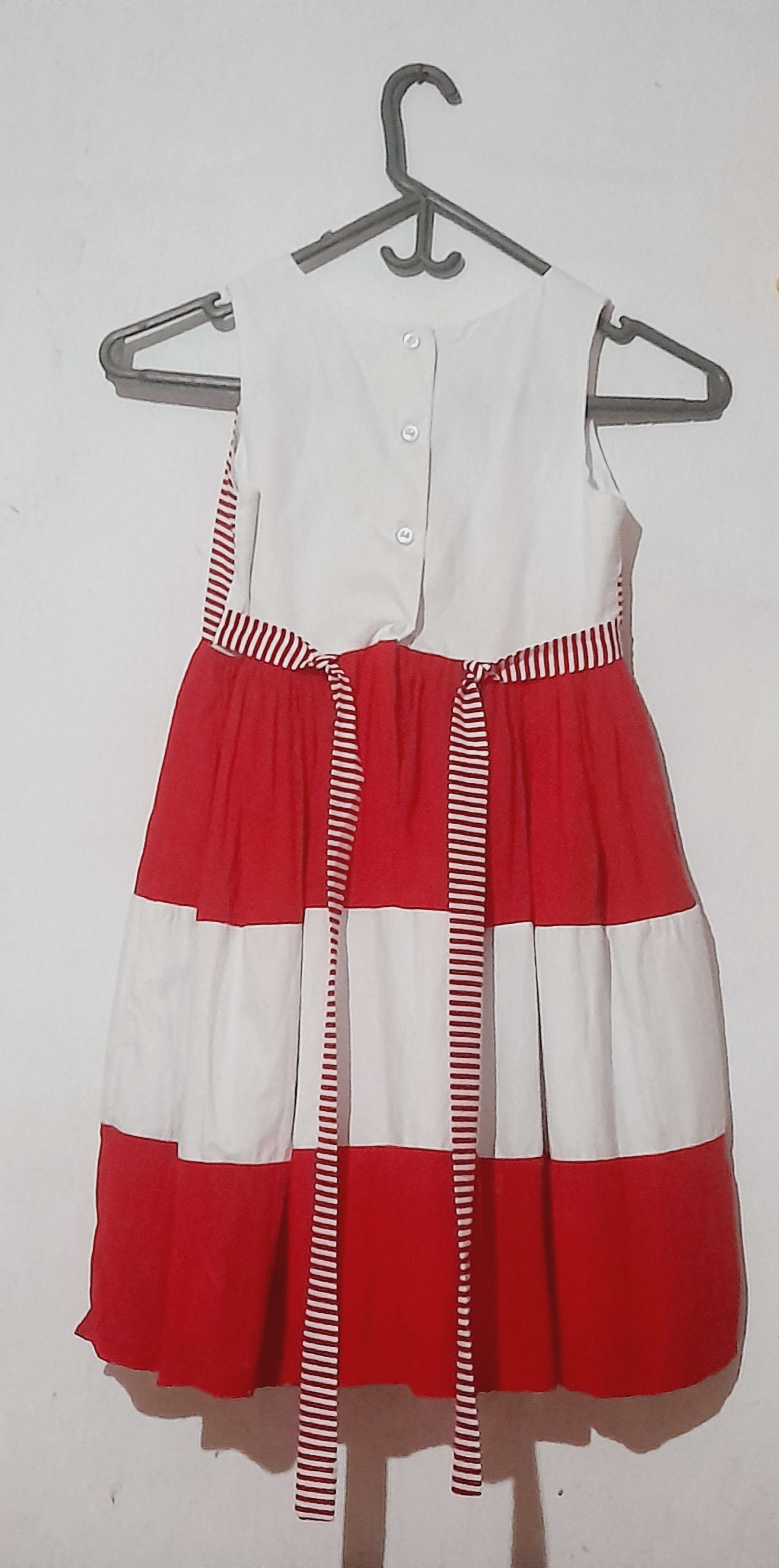 Hermoso vestido de niña en color rojo y blanco con fondo, talla 8. Marca Hormiguita. Ideal para la princesa de la casa!