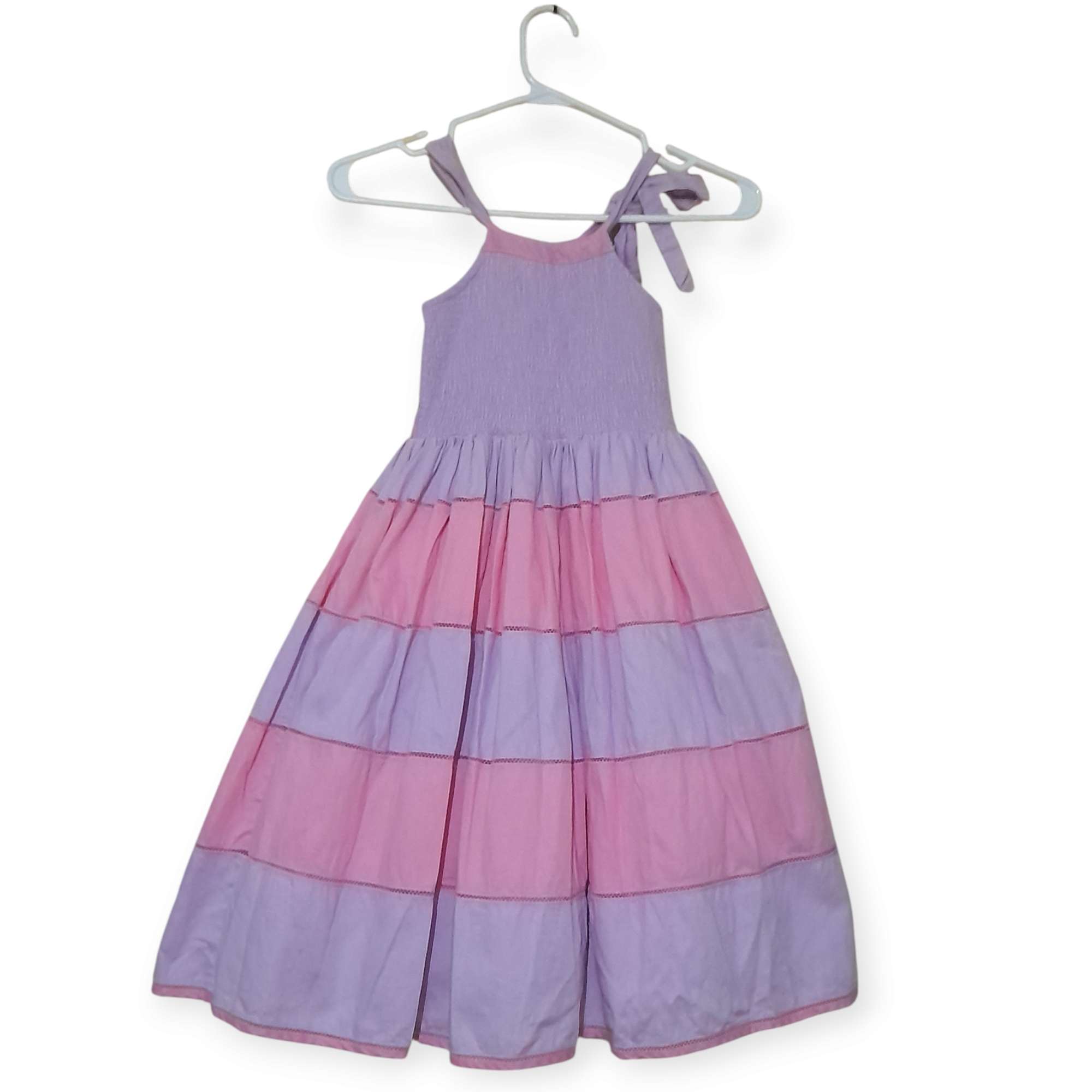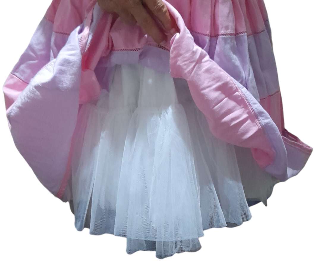 Hermoso vestido de la diseñadora Erika Schnurbusch. Talla 3. Presenta un diseño elegante en dos tonos pastel: rosado y lila. Ideal para ocasiones especiales y fiestas, cuenta con una falda amplia y un doble fondo que le da un toque de movimiento y elegancia. Un detalle destacado es el lazo lila que decora la parte izquierda delantera, cerca del hombro, agregando un toque de sofisticacion y encanto!