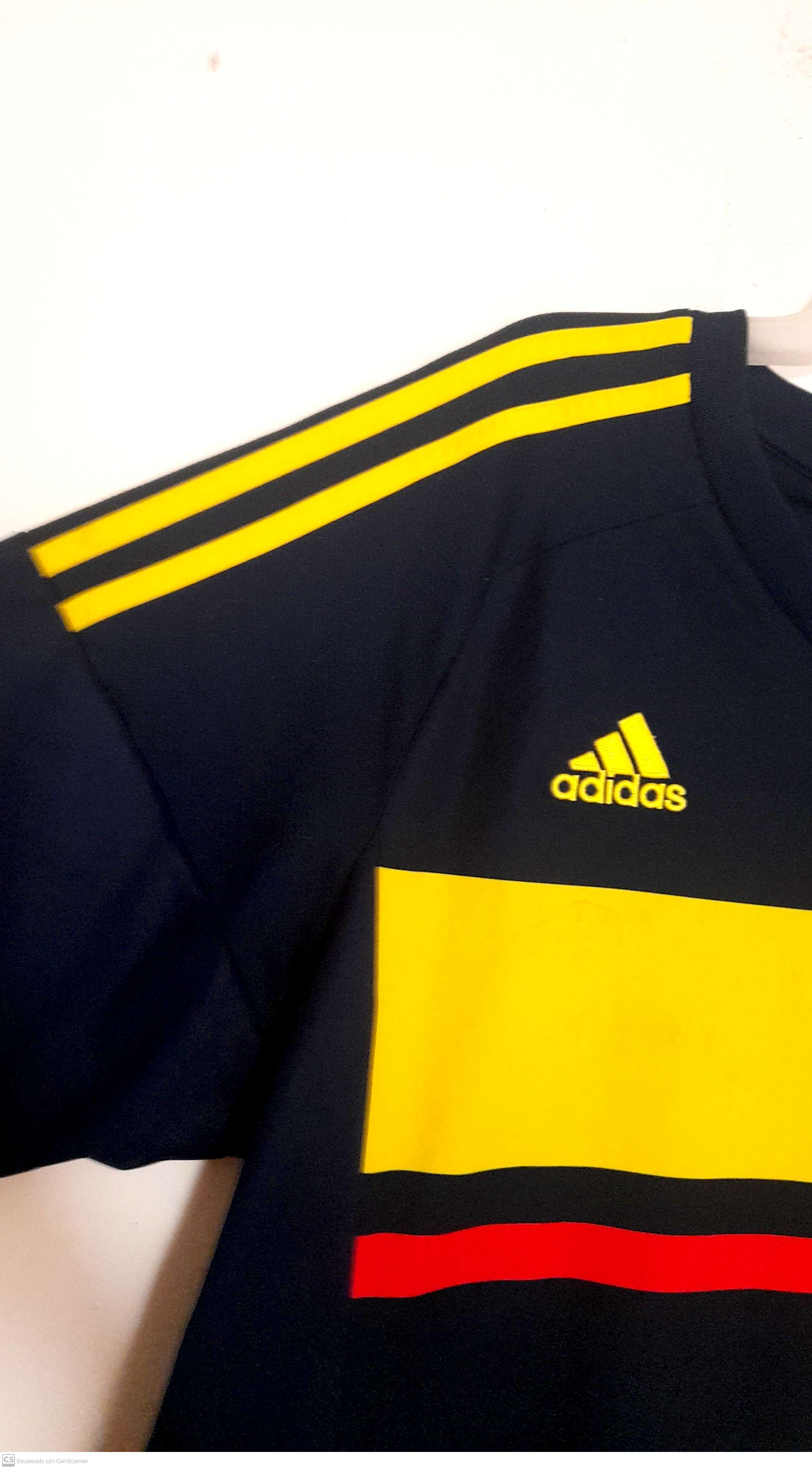 OFERTA VALIDA DEL 18 NOV AL 25 NOV DE 2025 Demuestra tu orgullo por la Tricolor con esta camiseta oficial de Adidas. Diseño clásico con franjas amarilla, azul y roja, escudo bordado y tecnología Climacool que te mantiene fresco en todo momento. Ideal para partidos, salidas casuales o simplemente lucir tu pasión por Colombia. Cero manchas ni roturas. Conservada como nueva.