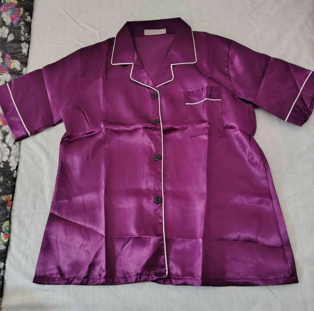 Producto nuevo Conjunto de piyama de satén color uva Dos piezas manga corta el satén favorece el descanso Talla M